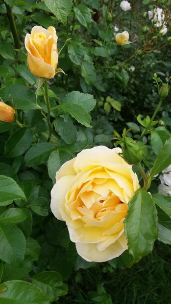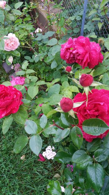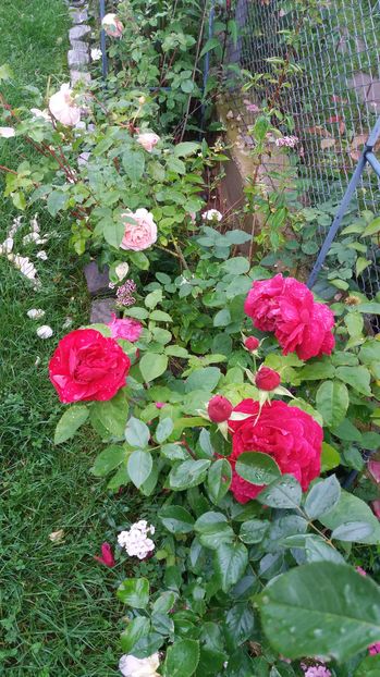 Trandafirii cumpărați ( clematite, ziana, helen15, adrian1, ninapopa ) de la si plantati in perioade diferite. Din ce am observat eu .ei trec prin trei etape. In primul an se adapteaza noului pământ. In al doilea an isi fac curaj si cresc mai multi lastari, depinde de soi. Abia in anul trei isi arata toata splendoarea. Totul depinde cum sunt îngrijiti.unde sunt expusi si cum au fost tăiați....si in ultim rand de temperaturi. Observ ca cei plantati in primul an daca nu sunt udati si hraniti cum trebuie, sufera, stau chinuiti. La unii englezesti se intampla . Mi-am propus anul viitor sa-mi pun sistem cu picurare si sa mai iau vreo 2,3 copaci mai maturi ptr umbra.,.Am mai completat gradina si cu tufisuri pe post de umbra pe langa copaci ... Ideea principala e : ptr ca am curtea mica , trebuie s-o fac sa para mai mare. Cum??? Prin distragerea ochilor de la linii si facute multe curbe in gradina...aici e smecheria...
